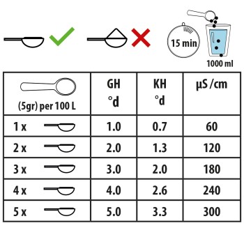 OsmoVital erhöht die KH (Karbonathärte) & GH (Gesamthärte) und fügt essentielle Vitamine und Spurenelemente wie Kalium, Eisen, Mangan, Bor, Iodid, Fluorid hinzu. Sowohl KH als auch GH tragen zu einem stabilen pH-Wert im Aquarium bei: Während GH die notwendigen Mineralien liefert, ist KH direkter für die Aufrechterhaltung eines stabilen pH-Werts verantwortlich und wirkt wie ein schützender Puffer.
